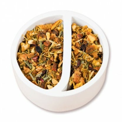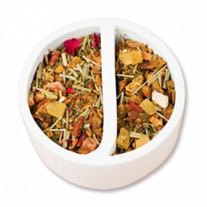 Vruchtenmix met appel, ananas, papaja, gojibessen, citroengras en rozenknoppen.